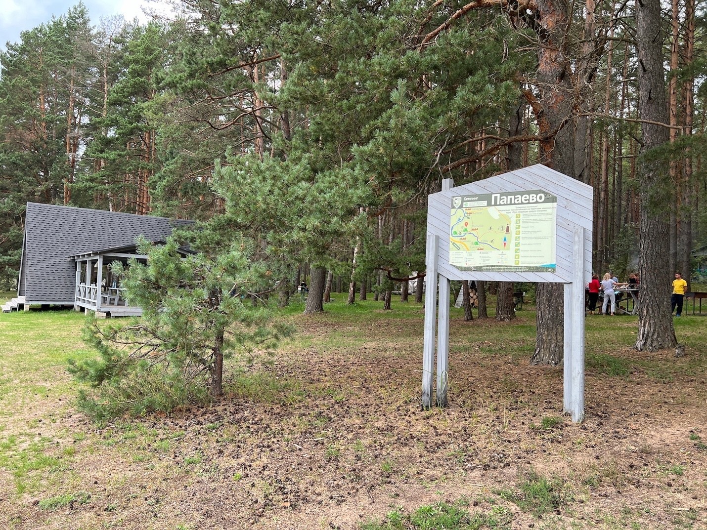 На кемпинге работает информационный пункт, где можно получить разрешение на пребывание в парке, познакомиться с картой прилегающей территории, приобрести сувениры и издательскую продукцию о парке, взять напрокат велосипеды и каноэ (по предварительной записи). На кемпинге можно арендовать шатер или домик со спальными местами. Кемпинг оборудован большой беседкой для обедов и мероприятий, зоной мангалов, местами отдыха у костра, парковочной зоной, туалетами. Аренда места под палатку стоит обычные 200р. Кафе нет, душа нет, но есть баня, которую нужно заказывать заранее. Аренда домика – 5000р. на 2-3 места (кровати) (домик/сутки). Аренда шатра – 2500р. на 3-4 места (раскладные кровати) (шатер/сутки).