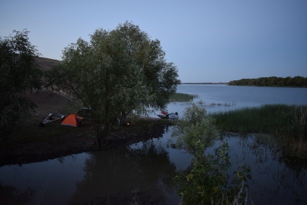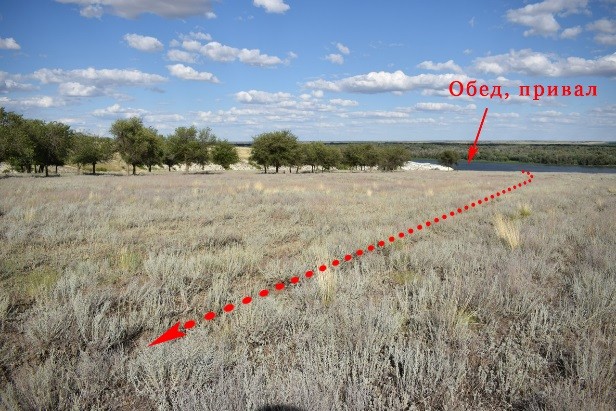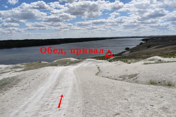 После старта у Станицы Голубинской маршрут проходит вне населенных пунктов. Возьмите с собой достаточно еды на предстоящие два дня пути с ночевкой.
