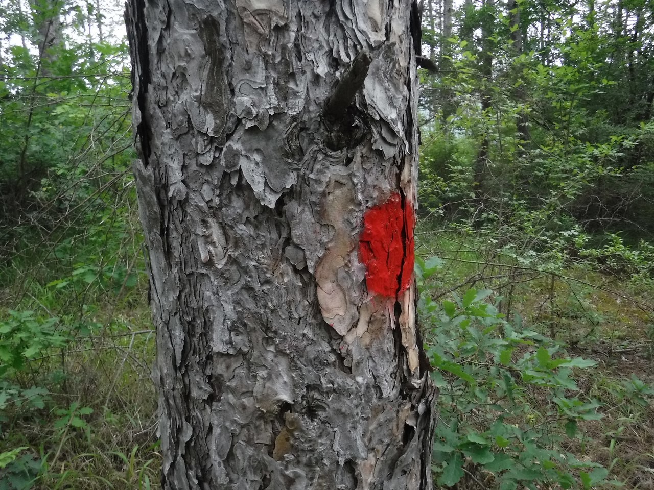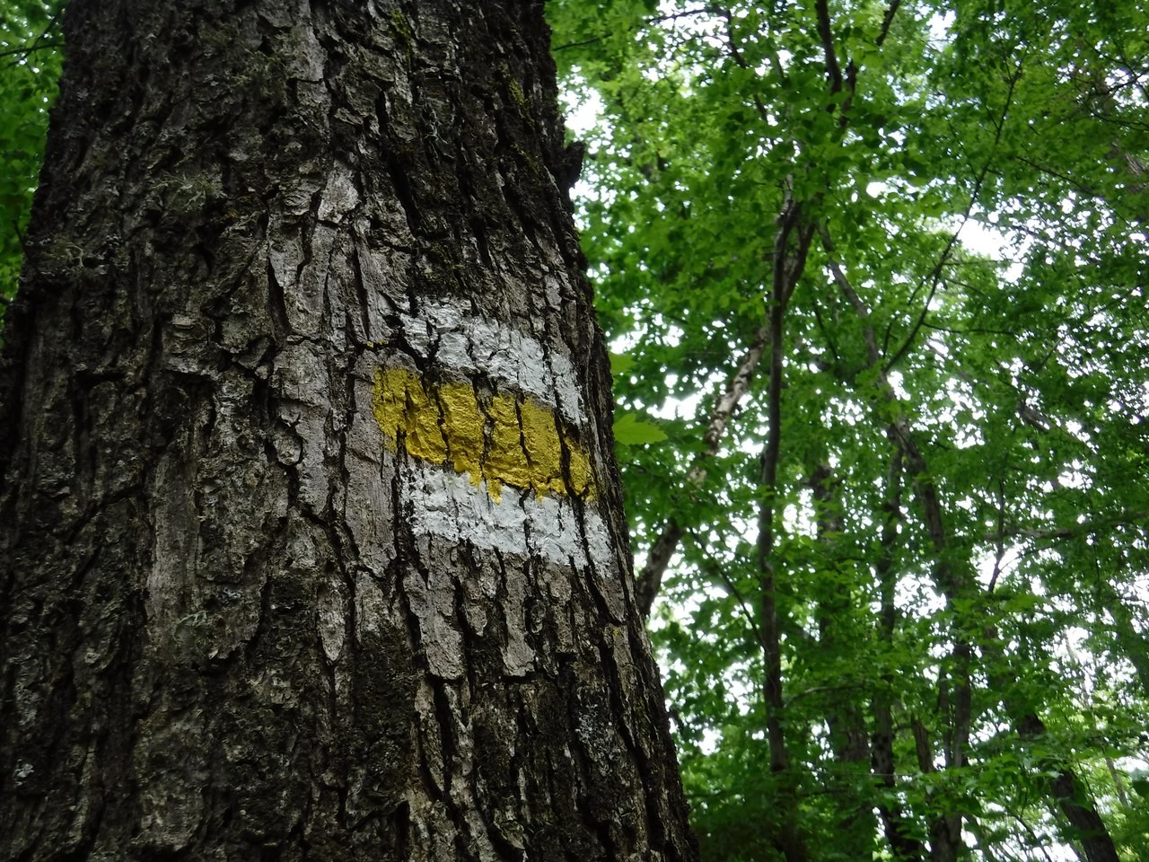 Маршрут промаркирован двумя маркировками: красная точка, бело-желто-белая маркировка.