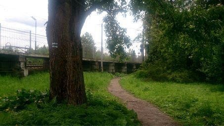 Пересекаем пути и поворачиваем налево по бетонной дорожке.
