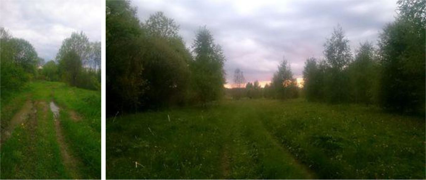 3.15км КФ: Дорожка выходит из леса на частично заросшее поле. ФК: