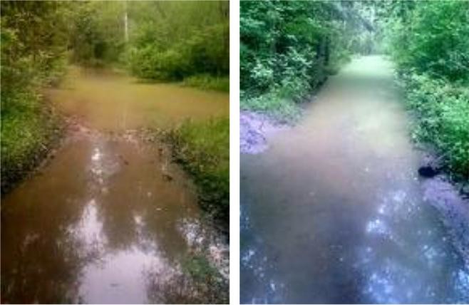 тропа пересекает небольшой ручей, перед ним небольшая тропинка