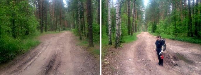 дорога. Нам не по ней, а прямо по просеке. АП: Слева сзади
