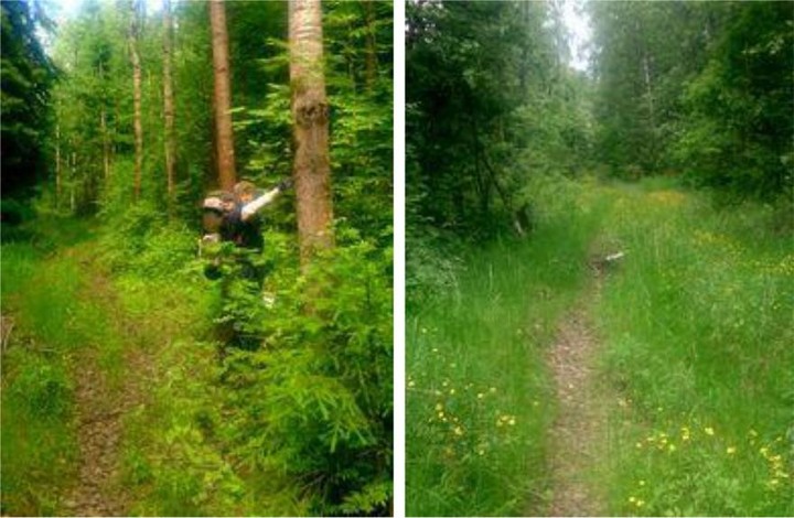 по слабозаметной колее в высокой траве. Протяжённость этого