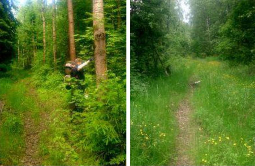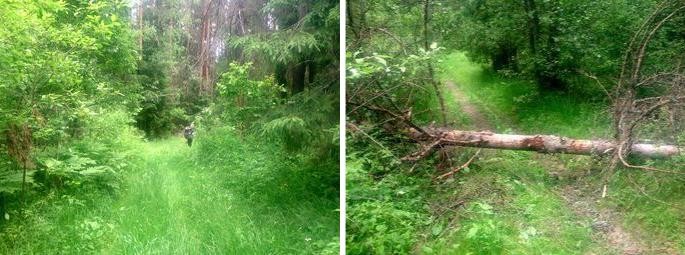 по слабозаметной колее в высокой траве. Протяжённость этого