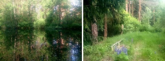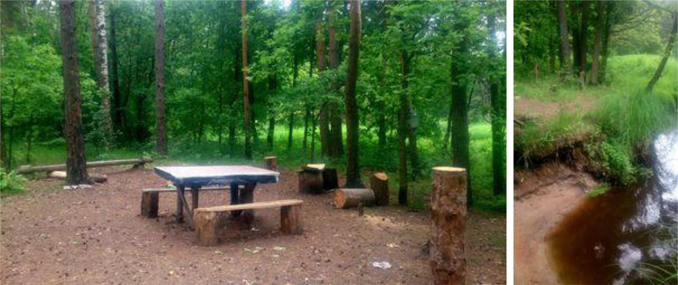 лесу есть кострище. Рекомендуемое место отдыха (мало комаров, так