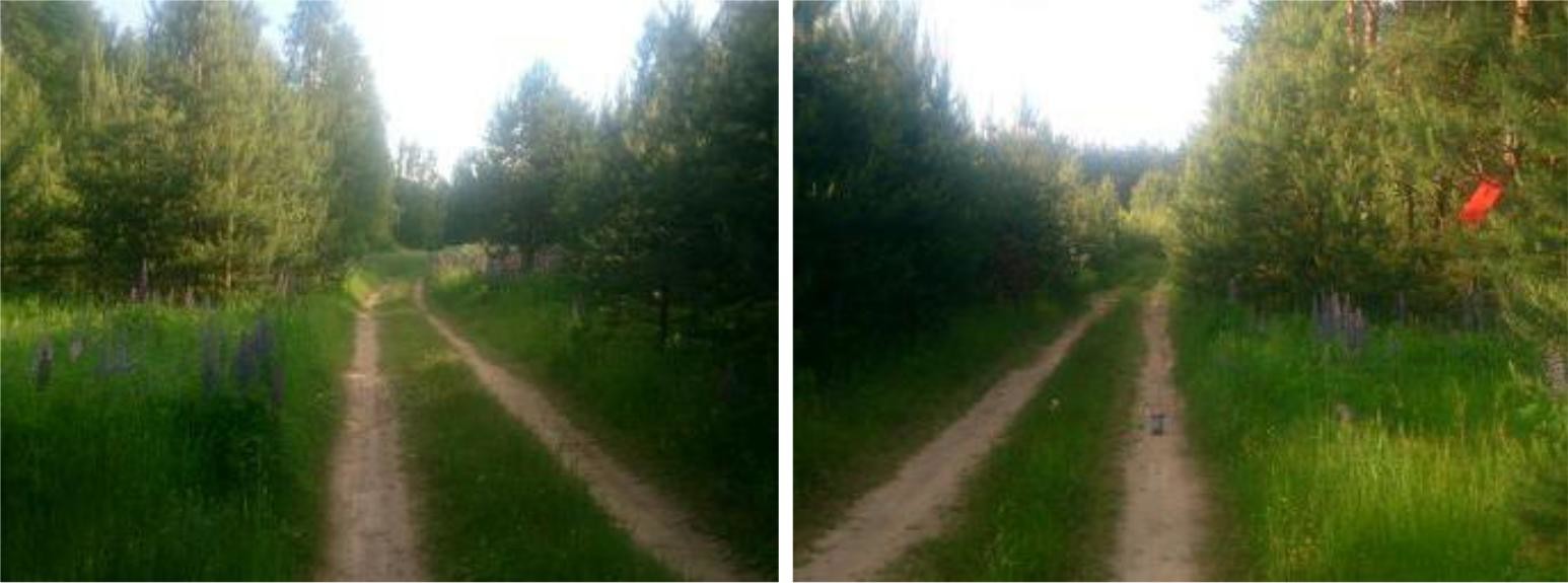 15.1км (X24). Развилка. ПА: нам по правой дороге, в перелесок.