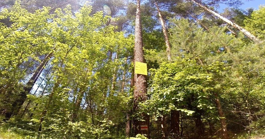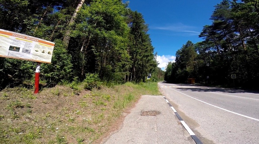 Наш маршрут начинается с остановки Астраханка. Здесь можно увидеть несколько маркировок, так как отсюда же проходит маршрут «Сувар», который начинается с противоположной стороны дороги.