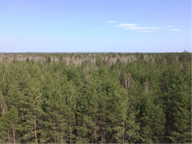 На смотровой вышке открывается завораживающий вид на другой берег Волги с домами города Чебоксары, а с противоположной стороны бескрайние просторы хвойного леса. На вышку лучше подниматься небольшими группами по 3-5 человек.