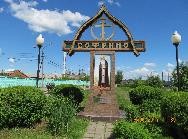 - Памятный крест в честь Серафима Саровского и Сергия Радонежского в Софрино