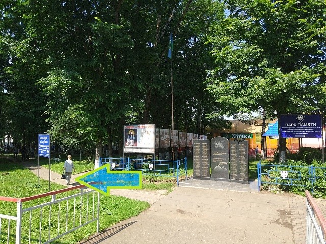 Если вы едете со стороны Москвы, то вам нужно будет перейти на другую сторону ж/д. Рядом с платформой на Москву находится мемориал, посвящённый 6-й роте Псковской воздушно десантной дивизии. От него нужно пройти влево (по той дорожке, которая по диагонали).