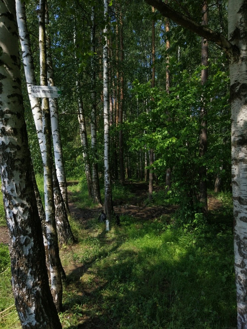 Чтобы начать со второго этапа (Калистово-Радонеж-Абрамцево), то выходить нужно на станции Калистово Ярославского направления. Маркировка начинается от платформы (на область). Время в пути из Москвы ~ 1 час 12 минут.