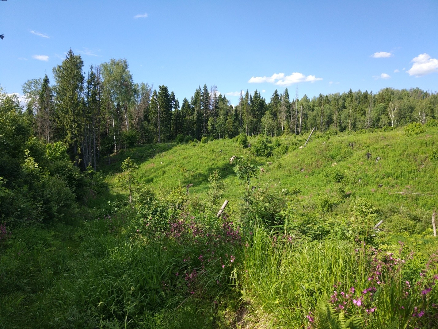 Маршрут простой, набора высоты практически нет. Путь проходит по хвойным и смешанным лесам, полям. Преобладающий тип дороги – грунтовки, тропы.
