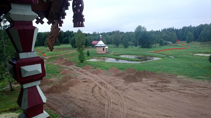 Нет смысла пересказывать здесь историю терема и окружающей местности. Вы можете ознакомиться с этим вопросом на странице терема на Facebook (там же есть контакты и вся необходимая информация об экскурсиях и проживании), а также здесь. Следует лишь сказать, что в начале 20 века этот край был богатым и процветающим, в основном за счет отходничества – выездной трудовой деятельности, преимущественно в Петербурге. Вокруг Асташова (точнее, вокруг бывшей Ризоположенской Великой Пустыни, основанной Преподобным Авраамием Галичским) существовал куст из 40 деревень, называемый Пустыней. Последующая коллективизация, потом укрупнение колхозов, общая неустроенность жизни и бесперспективность привели к уходу жителей и опустению деревень. Сейчас почти все эти деревни стали урочищами – существуют только в виде имен на карте и в памяти немногих местных старожилов. Да следы кольцевой планировки, характерной для этих мест, еще прослеживаются на вершинах холмов. Памятниками ушедшей эпохе и былому изобилию остаются полуразрушенные церкви: Ризоположения в Озерках и Ильи Пророка в Фалелеево.