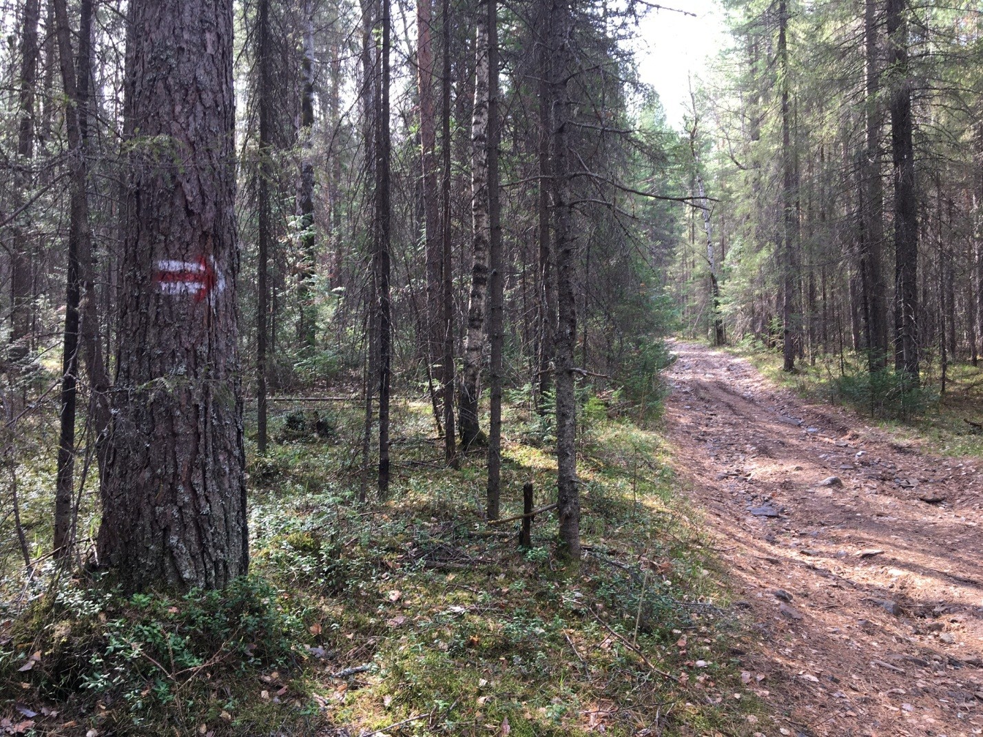 От остановки поселка Косья по направлению указательной таблички идем по дороге.