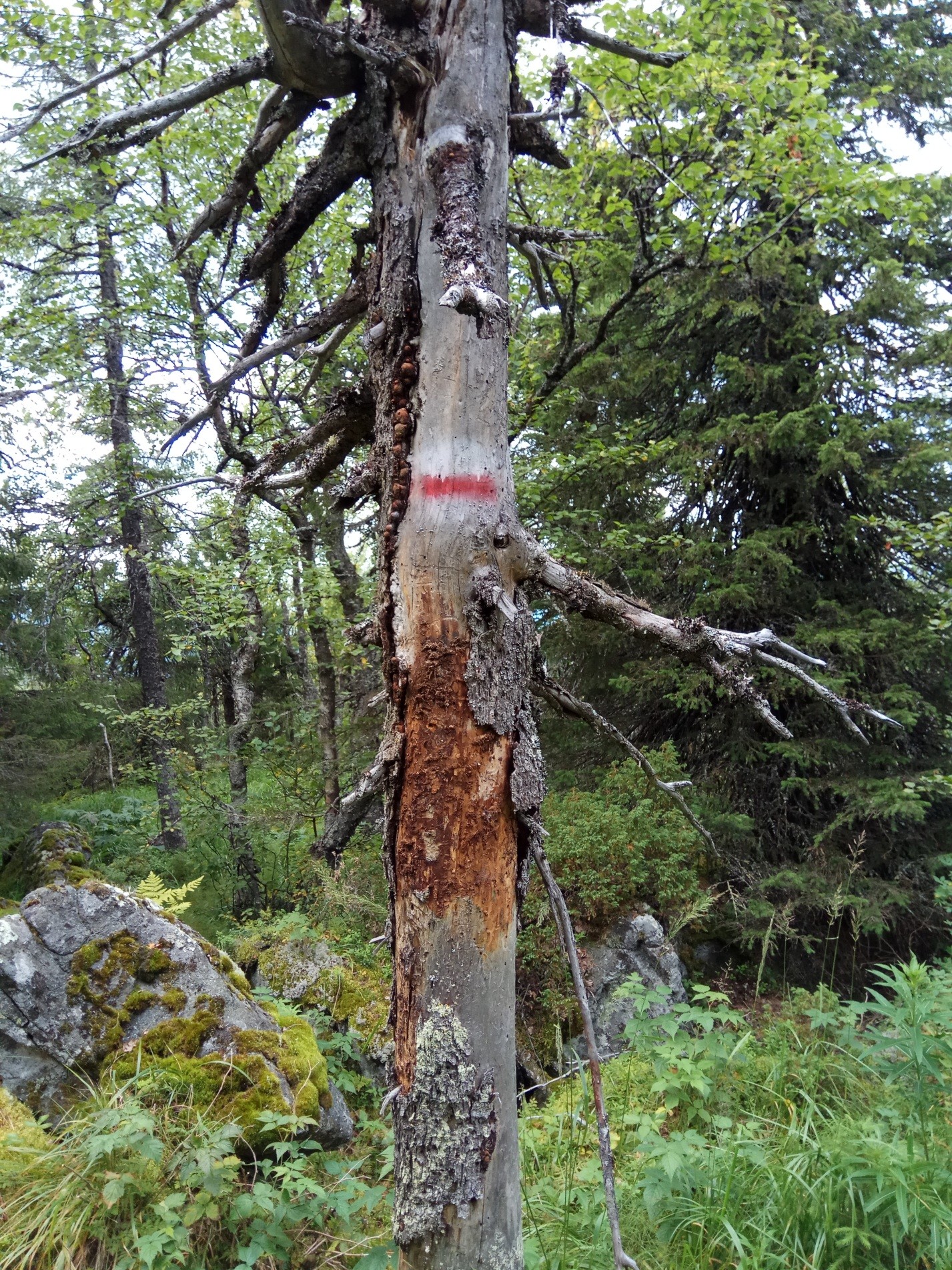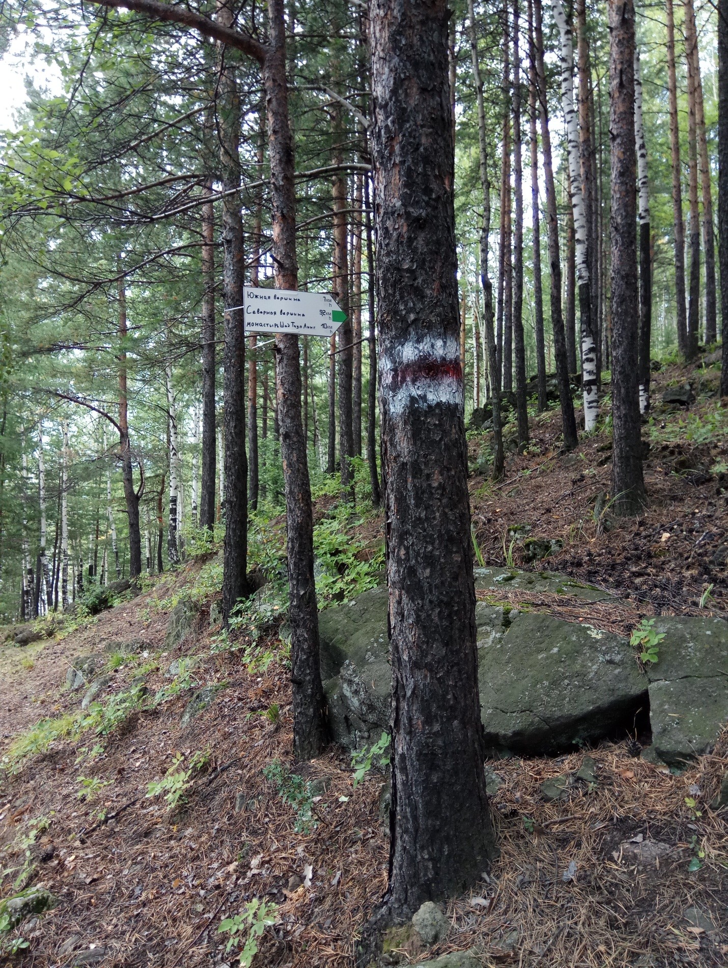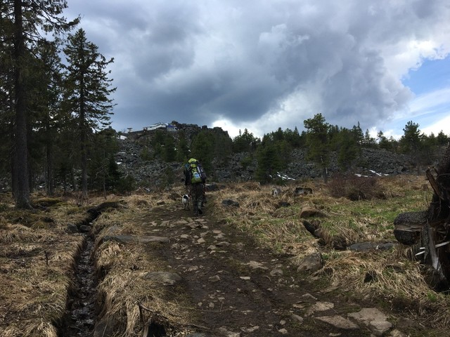 У Северной вершины развилка – вниз по склону через 15 метров будет хорошая поляна для ночевки, а через 500 метров будет памятник Гагарину – «Ракета» и шикарная поляна для ночевки с деревянным столом и сиденьями.