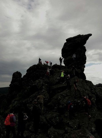 На вершине горы множество скальных останцев причудливой формы. У многих из них свои собственные названия. Самый известный останец – скала Верблюд.