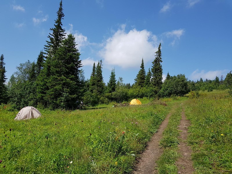 Ночевка в палатке возможна на поляне Ялангаса. Смотрите подробное описание ниже.